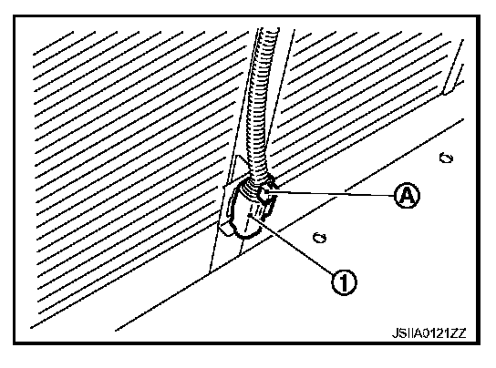 2. Disconnect ambient sensor connector (A), and then remove ambient sensor (1).
