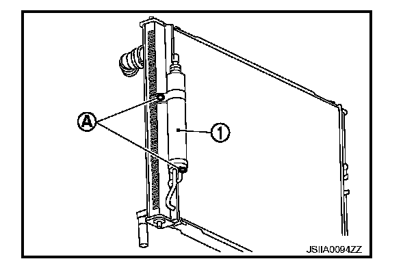 - Make sure liquid tank bracket is securely installed at protrusion of condenser. (Make sure liquid tank bracket does not move to a position below center of liquid tank.)