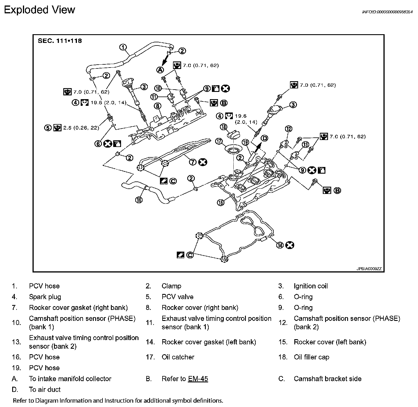 IGNITION COIL, SPARK PLUG AND ROCKER COVERExploded View EM-45: