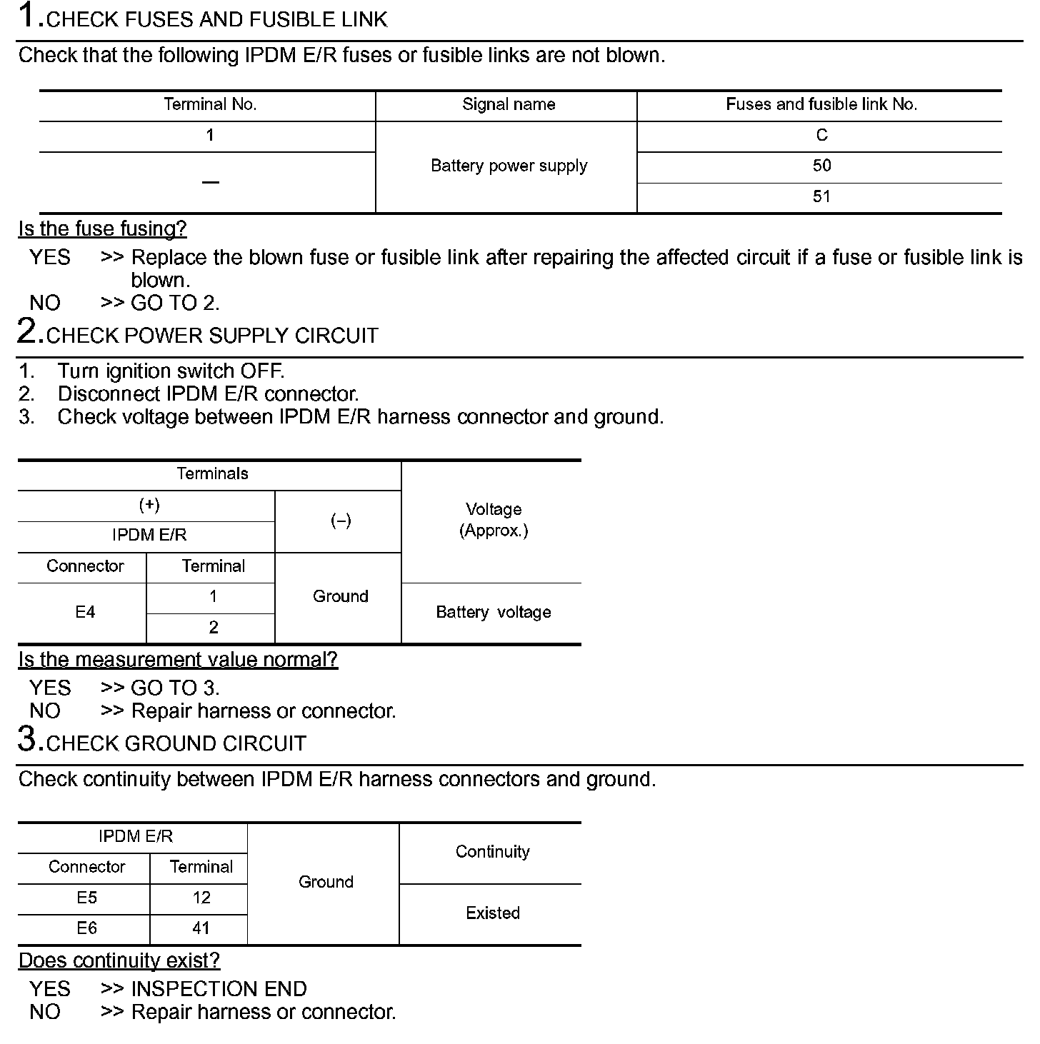 IPDM E/R (INTELLIGENT POWER DISTRIBUTION MODULE ENGINE ROOM) : Diagnosis Procedure