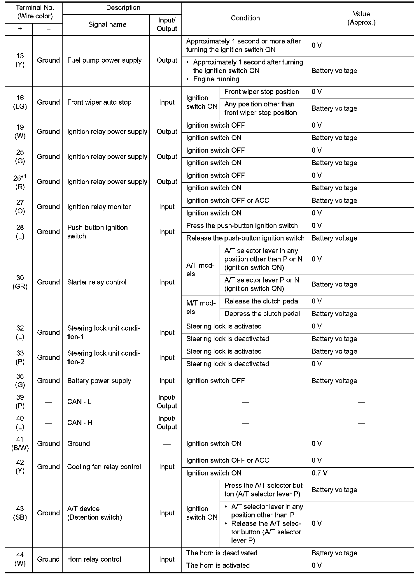 IPDM E/R (Intelligent Power Distribution Module Engine Room) Terminal Layout:
