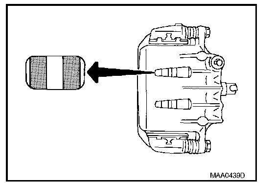 Check pad thickness from an inspection hole on cylinder body. Check using a scale if necessary.