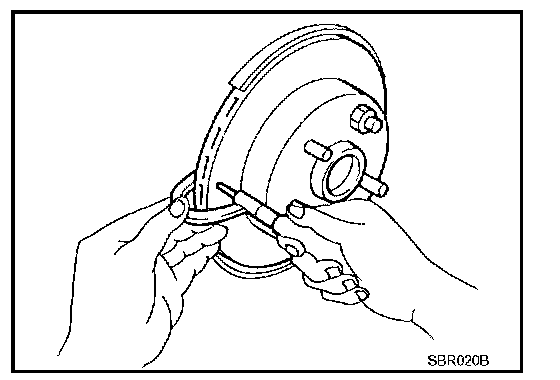 Check thickness of the disc rotor using a micrometer. Replace disc rotor if thickness is under the wear limit.