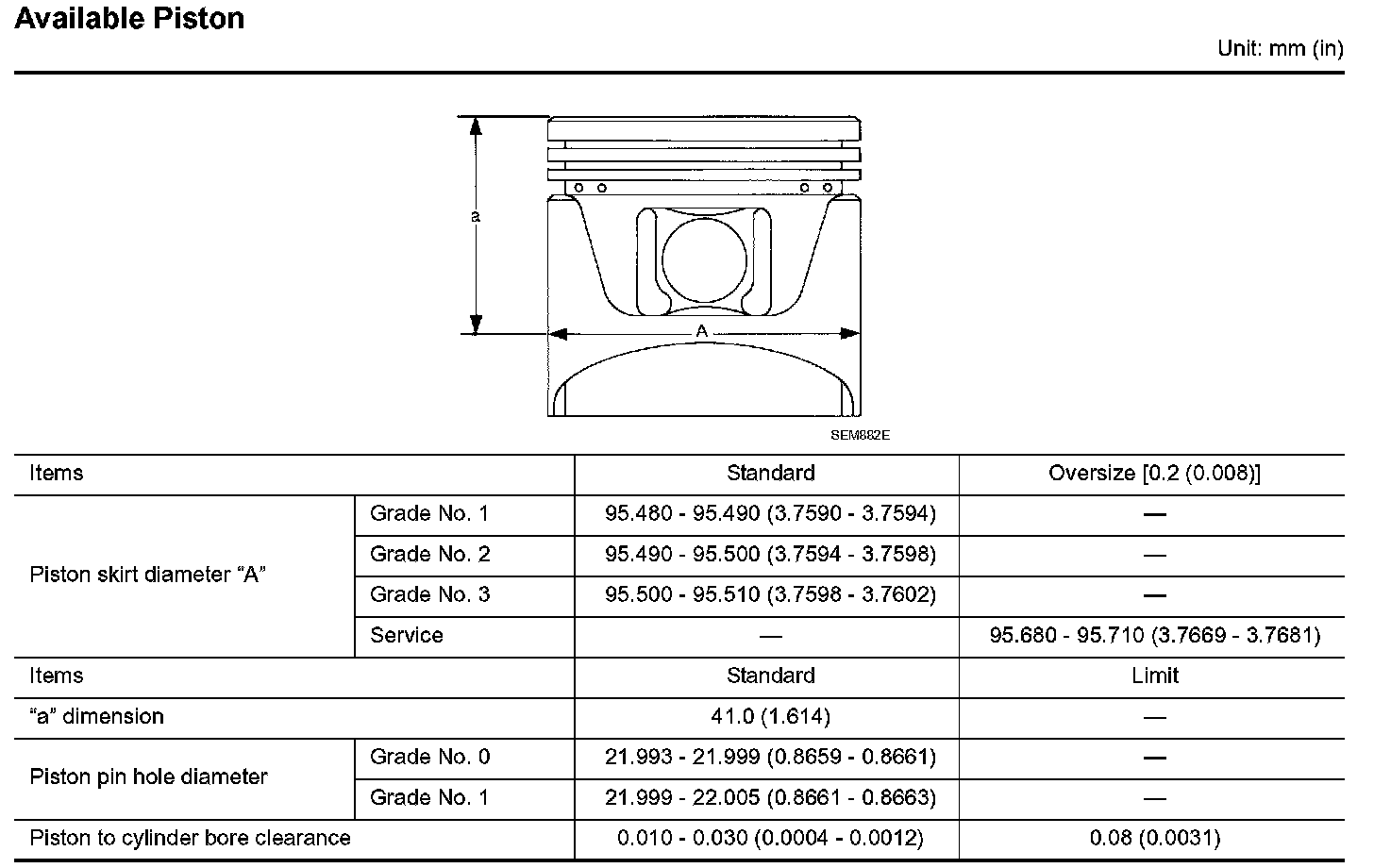 PISTON TO PISTON PIN OIL CLEARANCEPiston Pin Hole Diameter