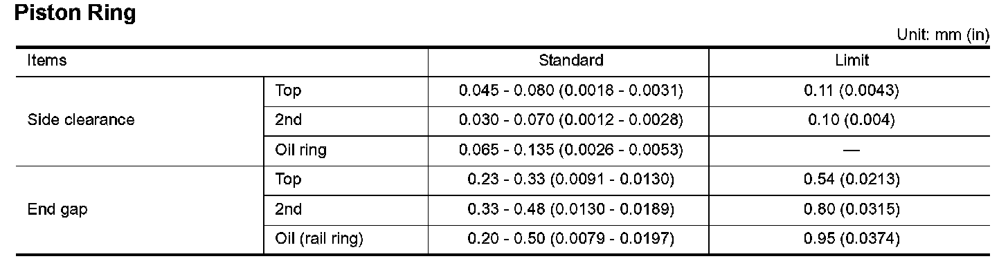 ^ If the measured value exceeds the limit, or if there are scratches and/or seizure on the cylinder inner wall, hone or re-bore the inner wall.