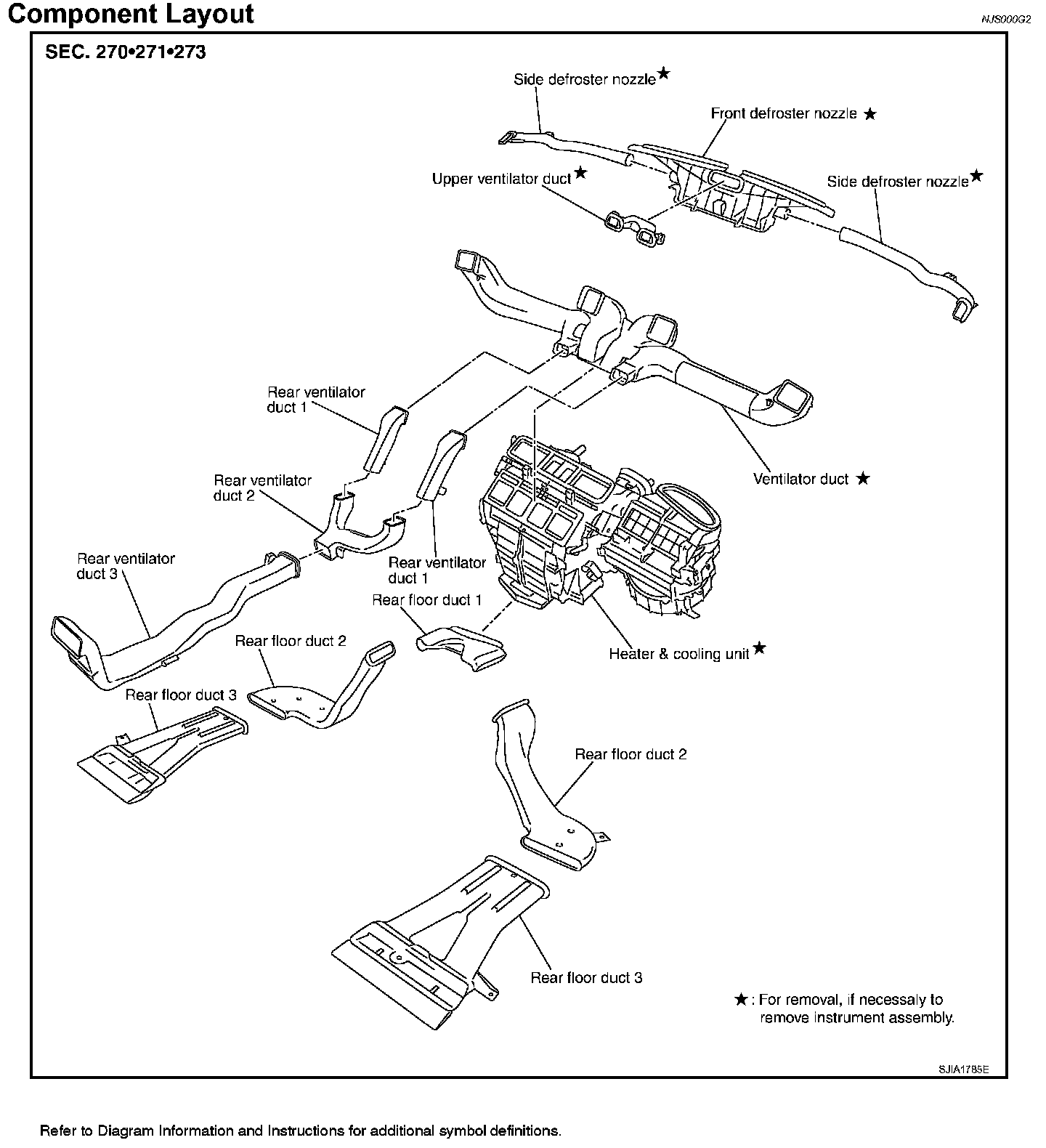 To prevent evaporator frozen up, the evaporator air temperature is monitored, and the voltage signal to the unified meter and A/C amp. will make the A/C relay go OFF and stop the compressor.