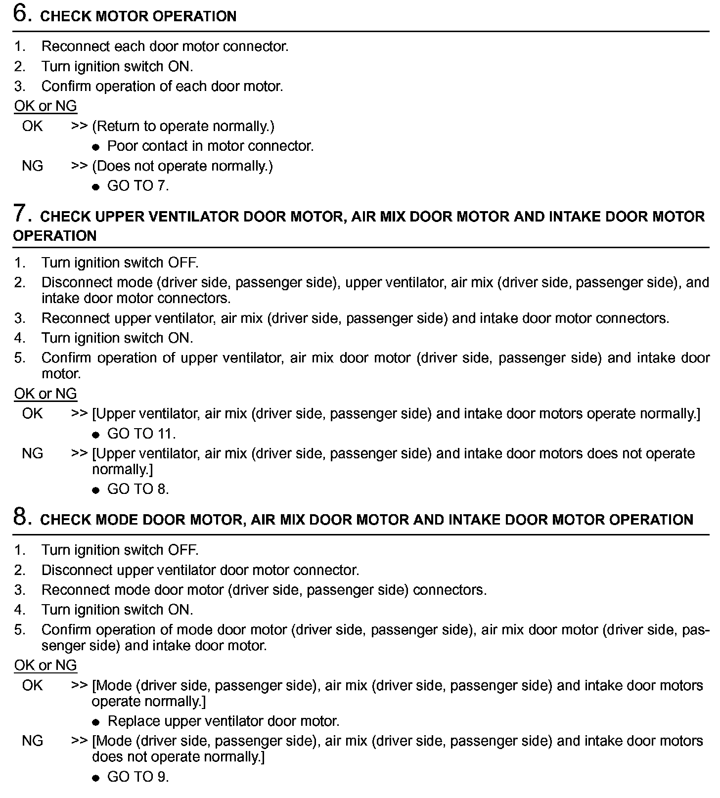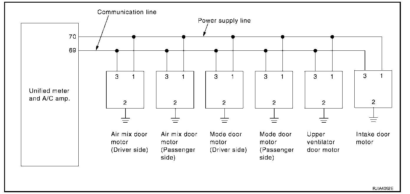 SYMPTOM: Mode door motors, upper ventilator door motor, air mix door motors and intake door motor does not operate normally.