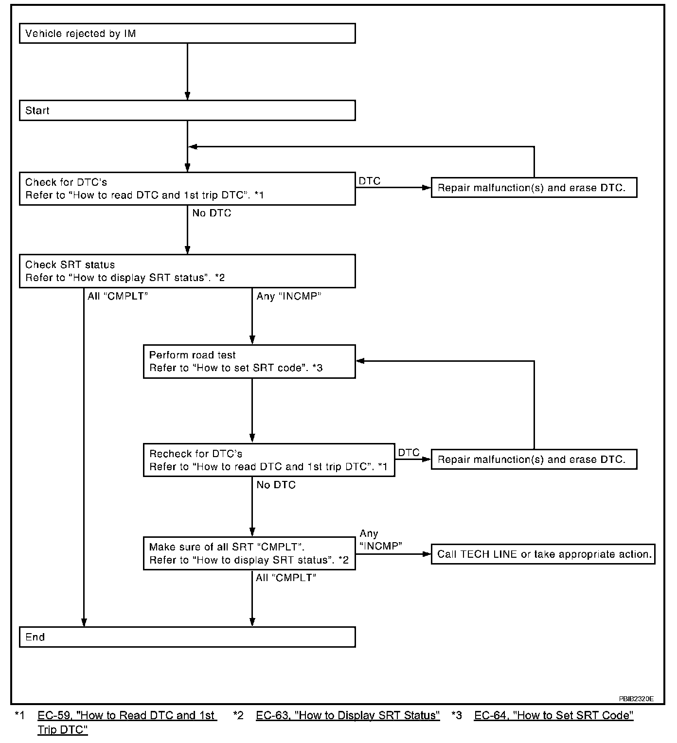 If a vehicle has failed the state emissions inspection due to one or more SRT items indicating "INCMP", review the flowchart diagnostic sequence.