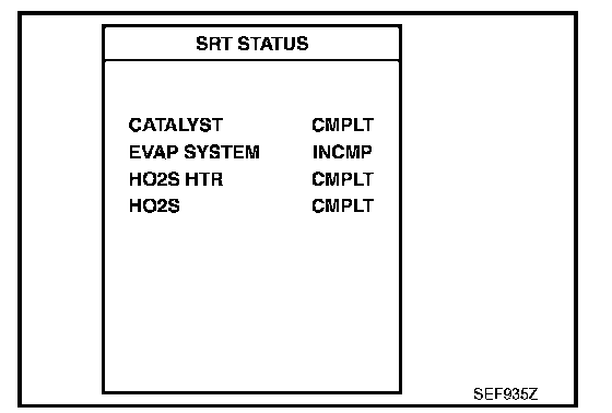 NOTE: SRT can be set as "CMPLT" together with the DTC(s). Therefore, DTC check must always be carried out prior to the state emission inspection even though the SRT indicates "CMPLT".