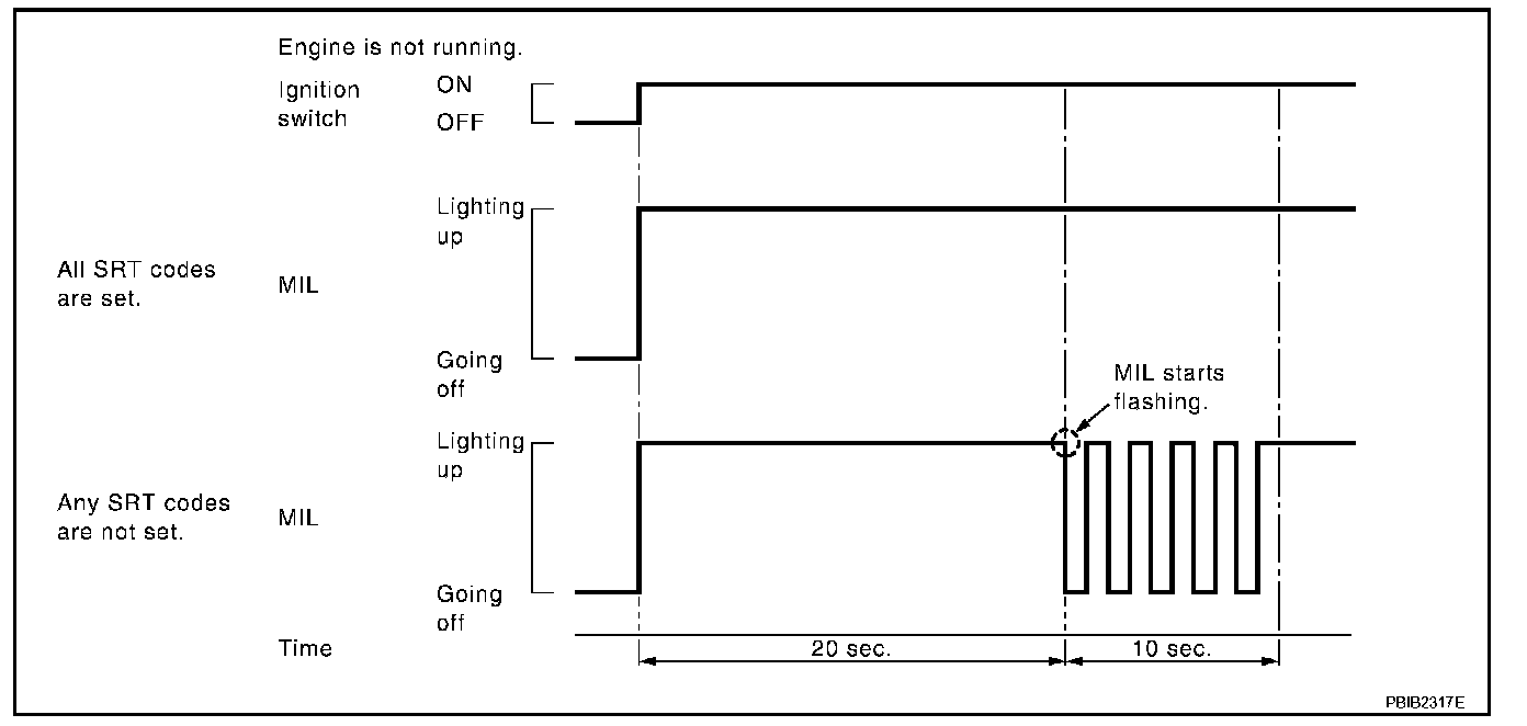 - When any SRT codes are not set, MIL will flash periodically for 10 seconds.