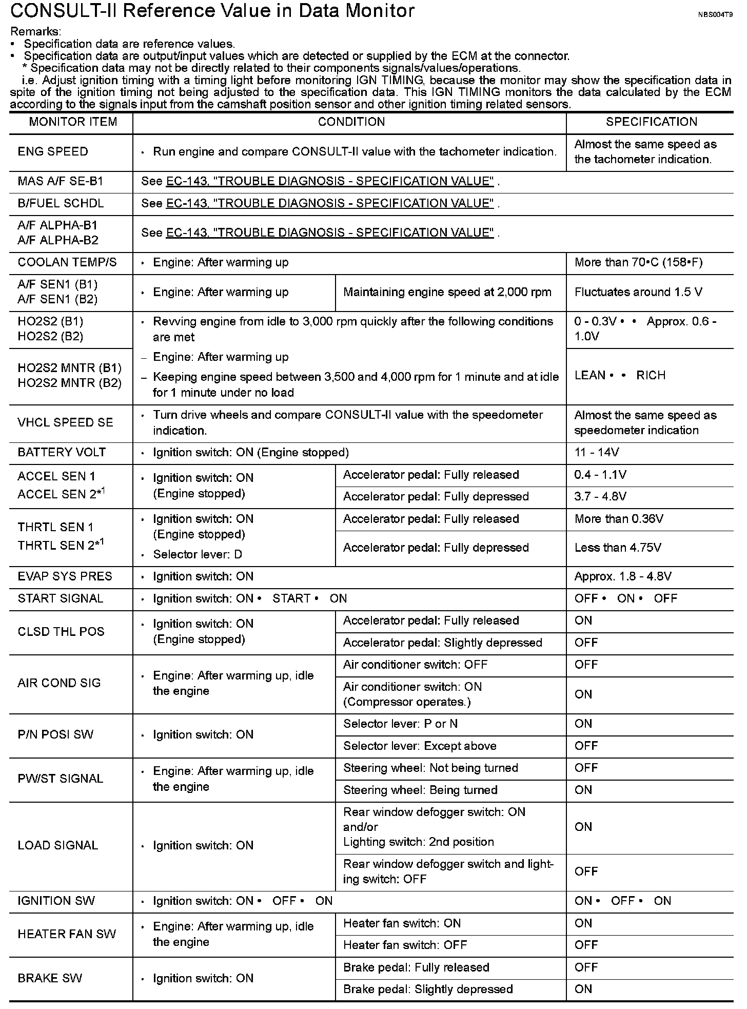 CONSULT-II Reference Value In Data Monitor