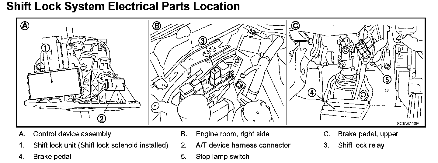 Shift Lock System Electrical Parts Location: