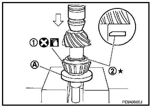 ^ Pay attention to the direction of pinion height adjusting washer. (Assemble as shown in the figure.)