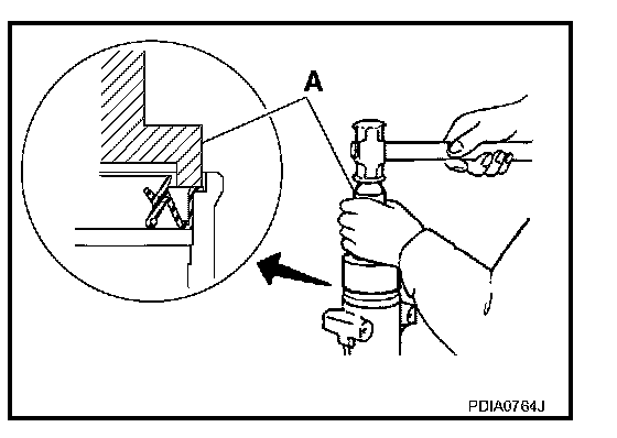 8. Using the drift, install front oil seal as shown in figure.