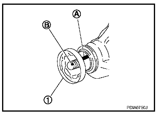 NOTE: When reusing drive pinion, align the matching mark (B) of drive pinion with the matching mark (A) of companion flange, and then install companion flange (1).