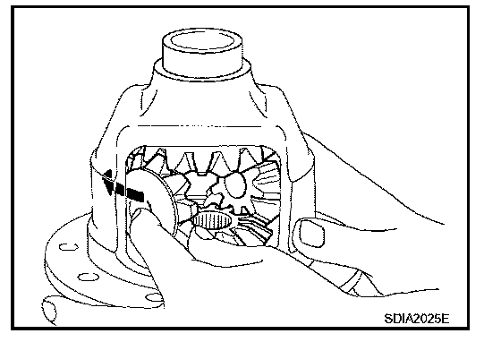 5. Measure side gear end play. If necessary, select the appropriate side gear thrust washers.
