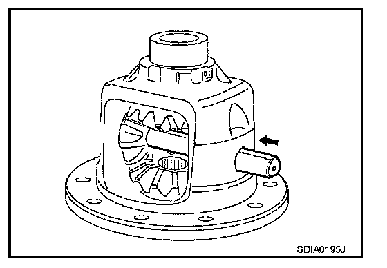 4. Align the lock pin holes on differential case with shaft, and install pinion mate shaft.