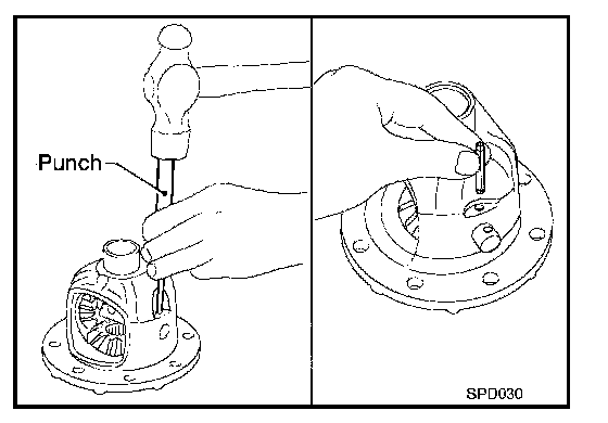 6. Drive a lock pin into pinion mate shaft, using a punch. Make sure lock pin is flush with differential case.