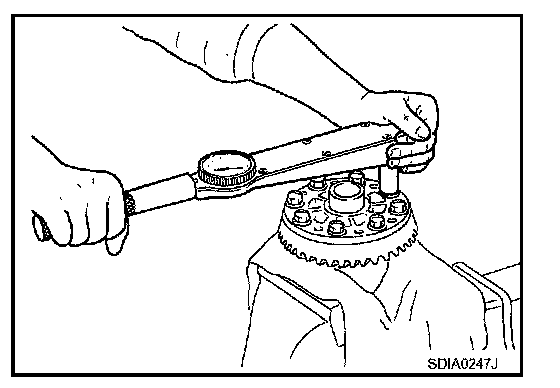 11. Adjust to the drive pinion lock nut tightening torque and pinion bearing preload torque.