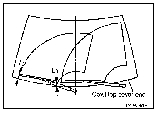 6. Make sure that wiper blades stop within clearance "L1" & "L2".