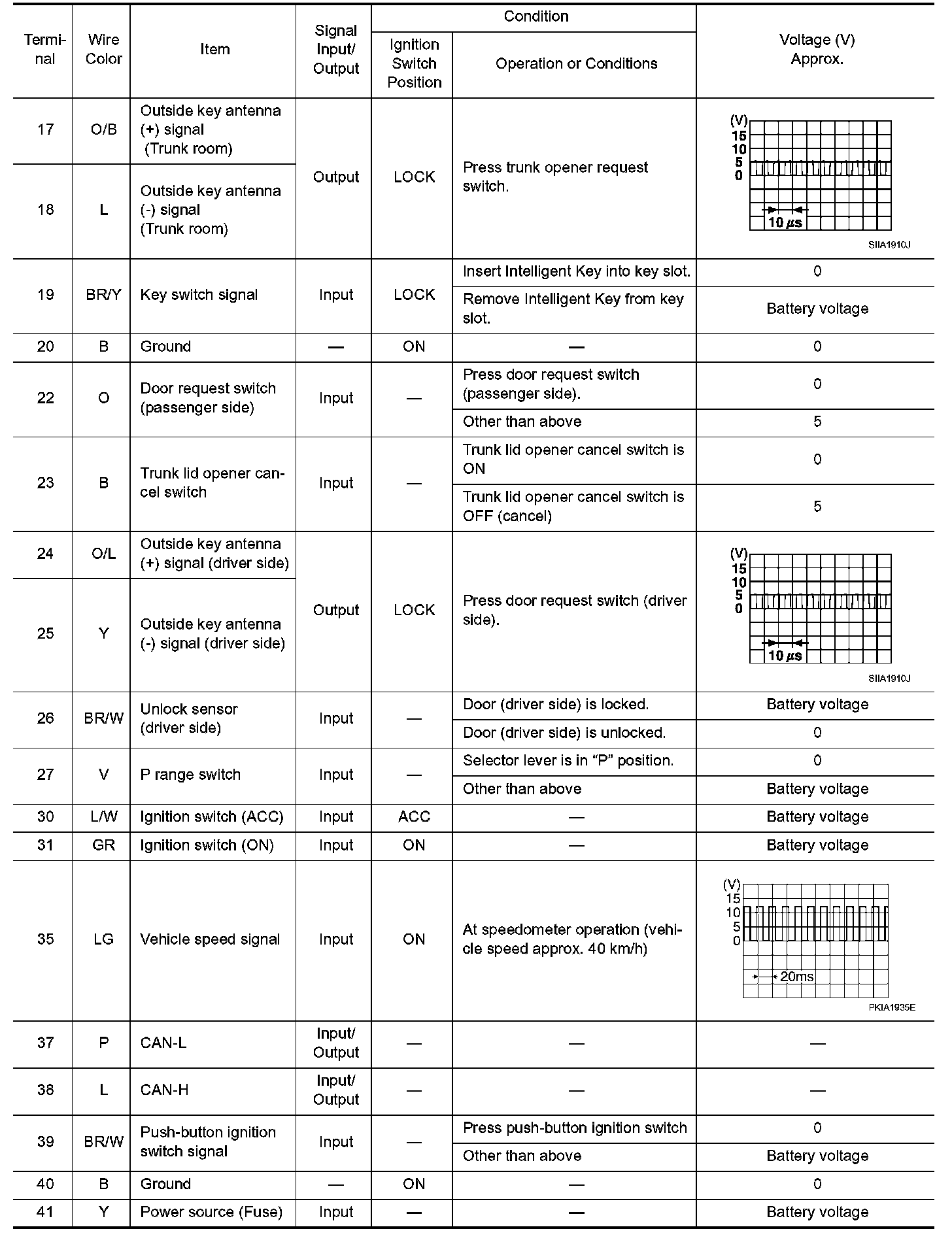Terminals And Reference Value For Intelligent Key Unit (Part 1):