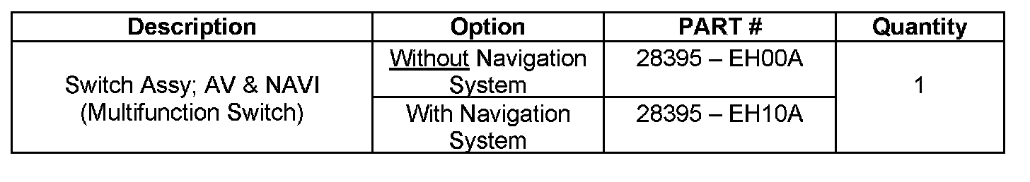 To remedy this potential condition Infiniti is conducting a Service Campaign to inspect the multi-function switch. If a replacement part is necessary Infiniti will replace the multifunction switch assembly free of charge for parts or labor.