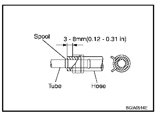 ^ Insert hose securely until it contacts tube spool (Do not apply fluid).