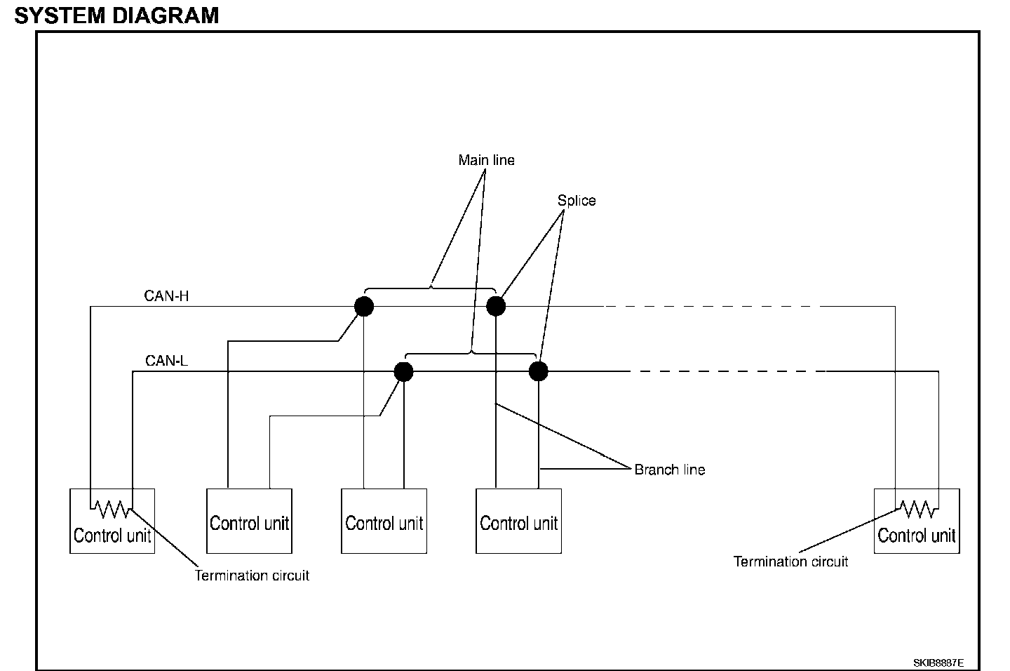 Each control unit passes an electric current to the termination circuits when transmitting CAN communication signal. The termination circuits produce an electrical potential difference between CAN-H and CAN-L. CAN communication system transmits and receives CAN communication signals by the potential difference.