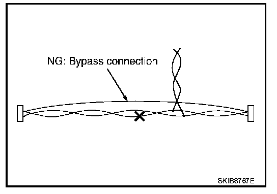 NOTE: Bypass connection may cause CAN communication error. The spliced wire becomes separated and the characteristics of twisted line are lost.