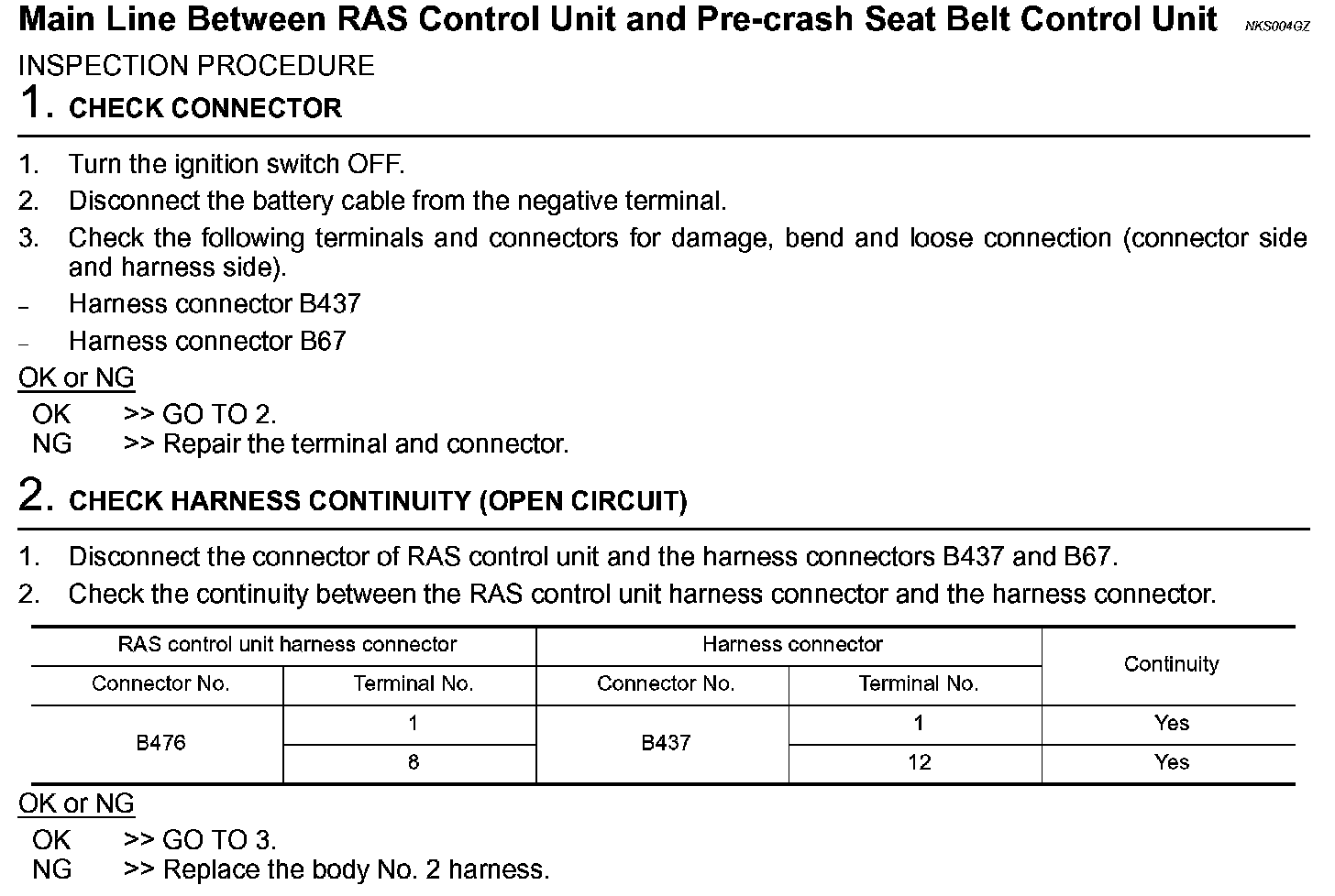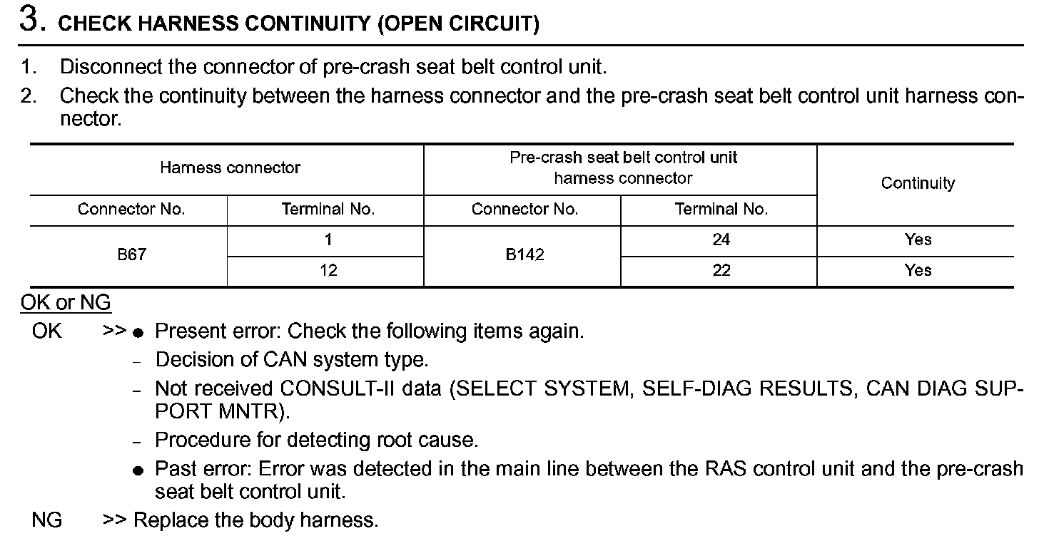 Main Line Between RAS Control Unit and Pre-Crash Seat Belt Control Unit