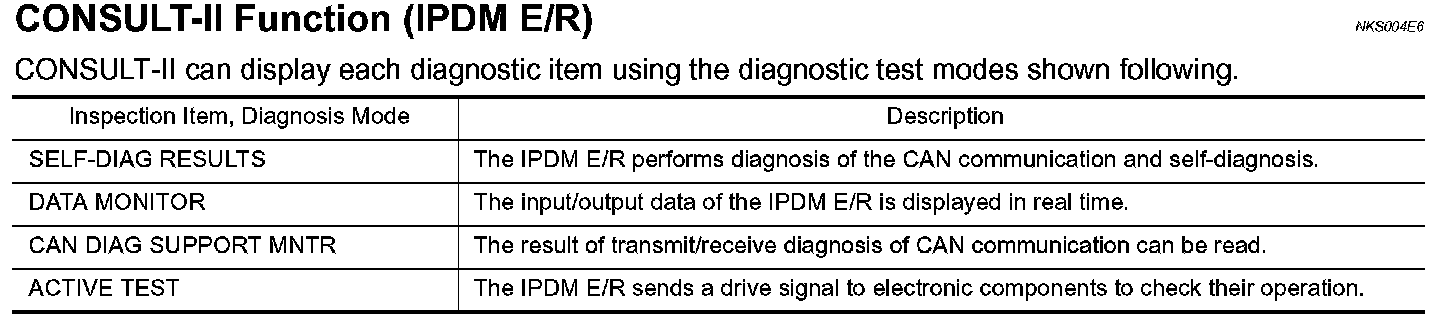 CONSULT-II Function (IPDM E/R)