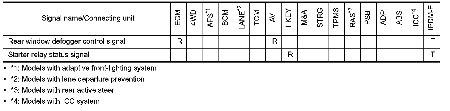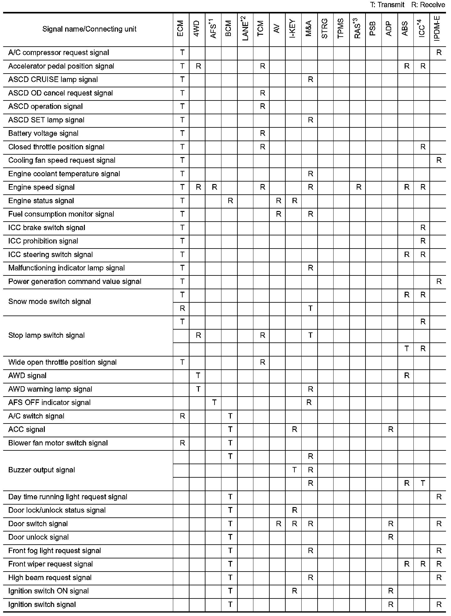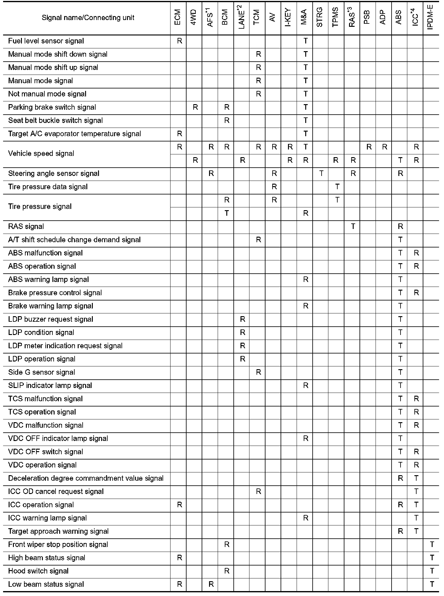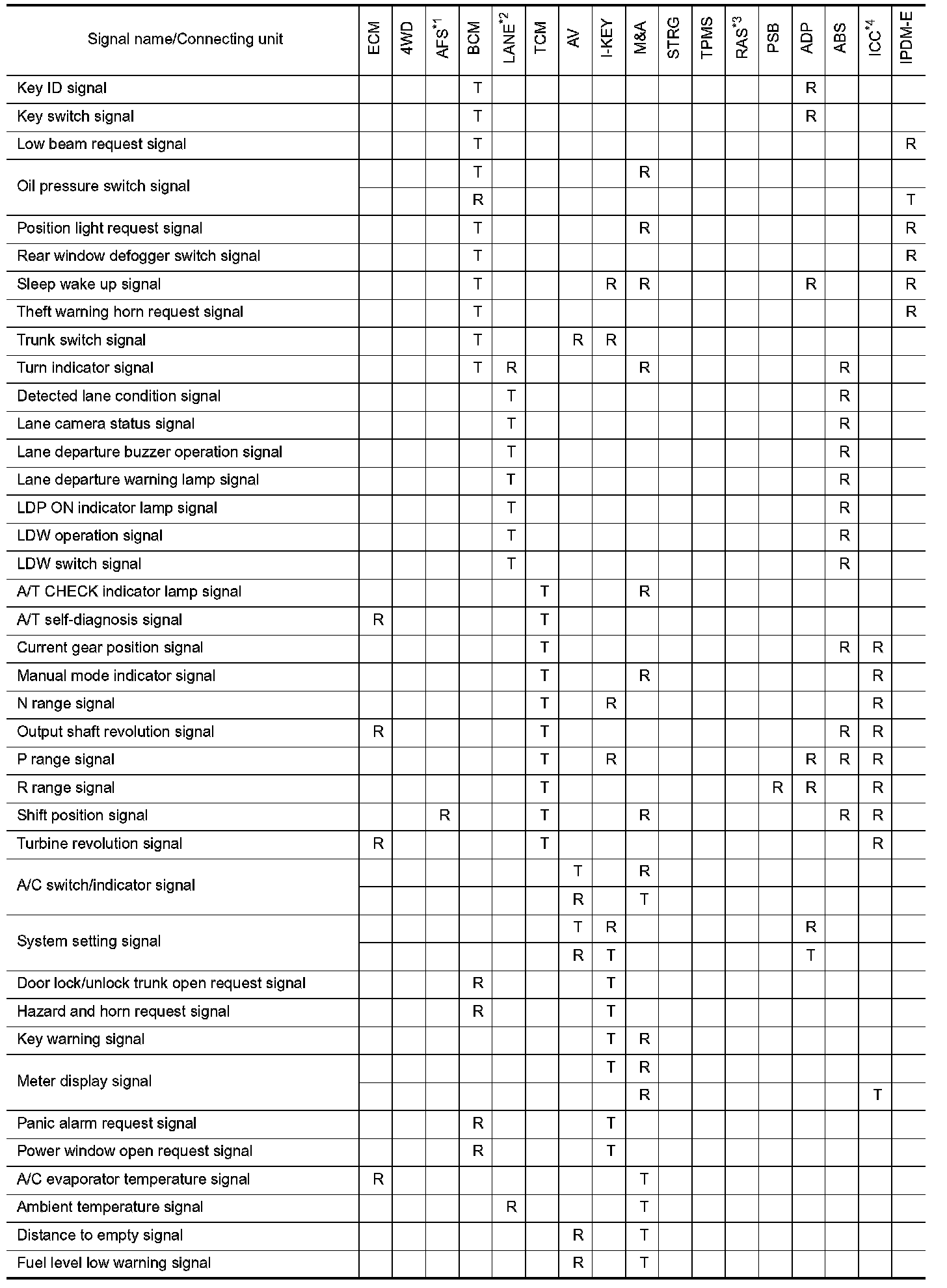 NOTE: Refer to LAN-25, "Abbreviation List" for the abbreviations of the connecting units. Abbreviation List