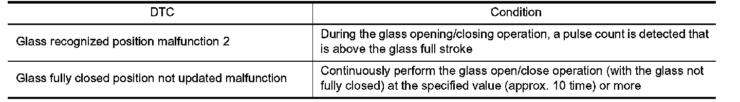 Perform the initialization when the following operations are performed or when the auto up operation is not performed. Refer to GW-56 (Front door), GW-61(Rear door). Overhaul Overhaul