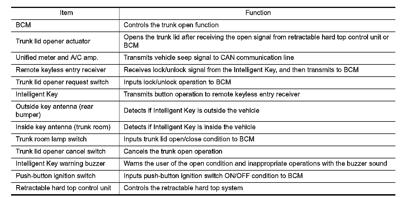 TRUNK OPEN FUNCTION : Component Description