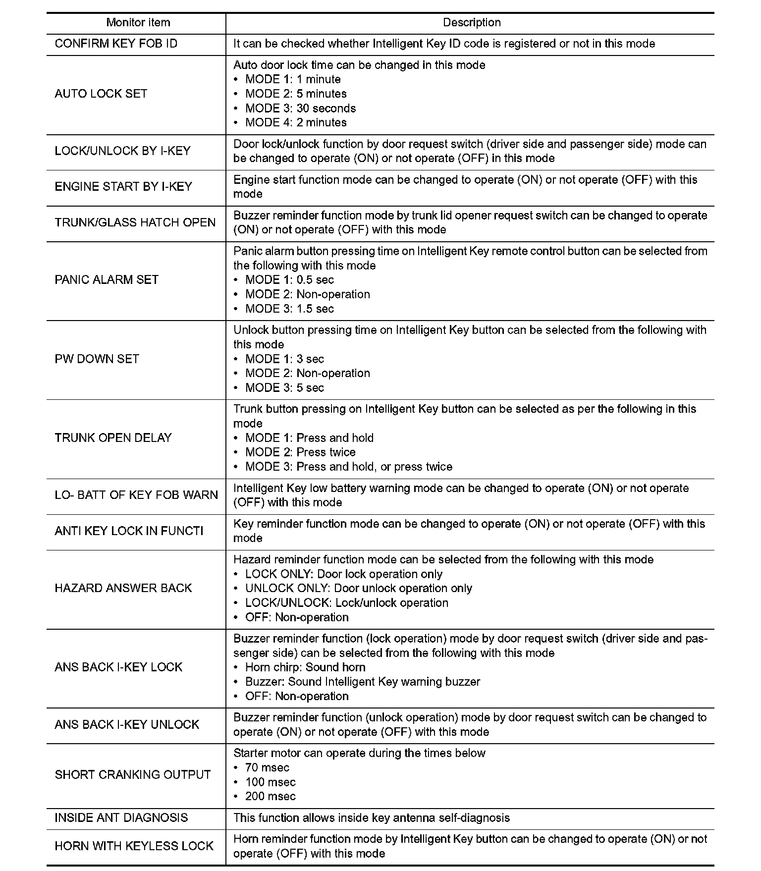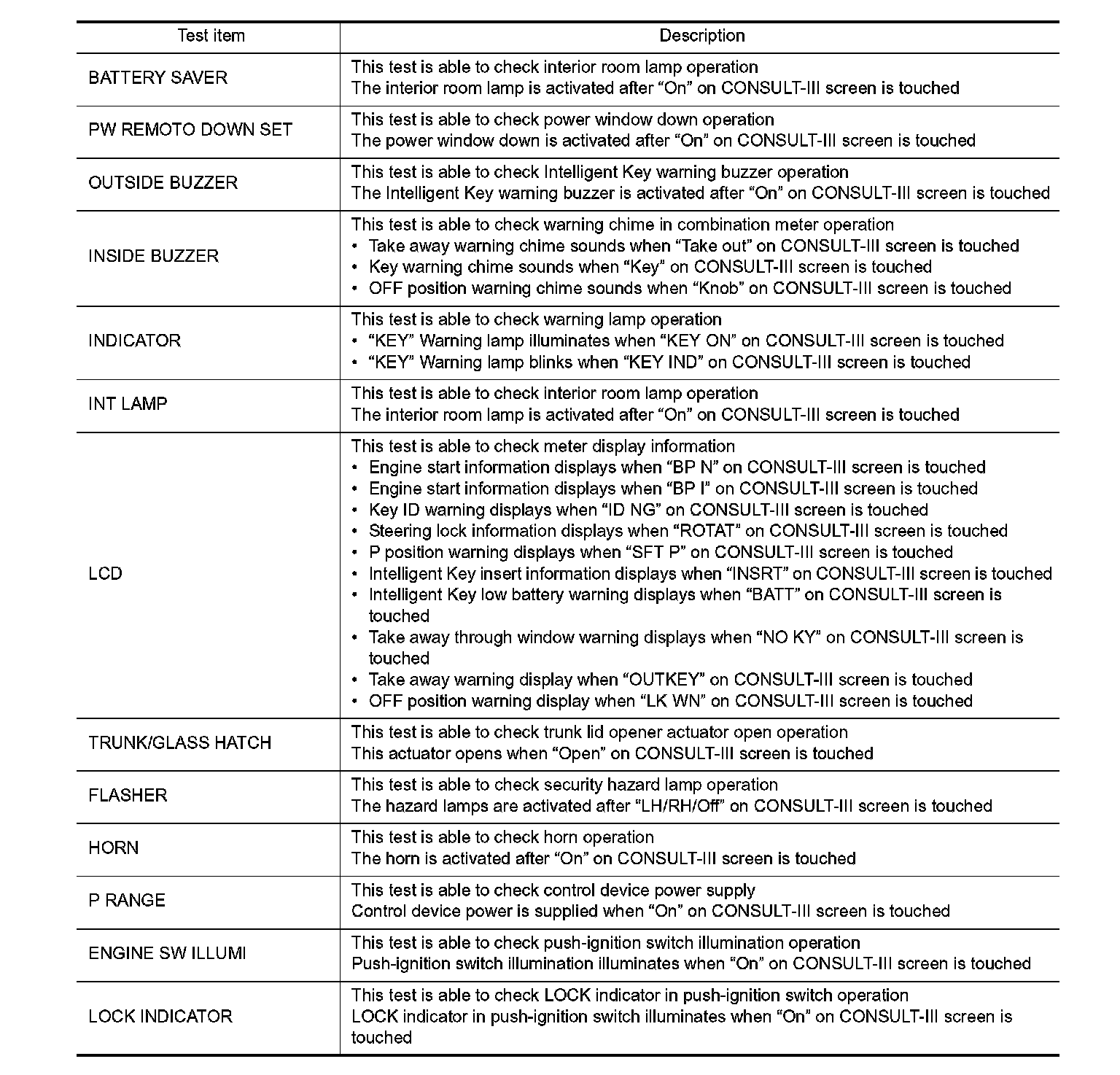 INTELLIGENT KEY : CONSULT-III Function (BCM - INTELLIGENT KEY)