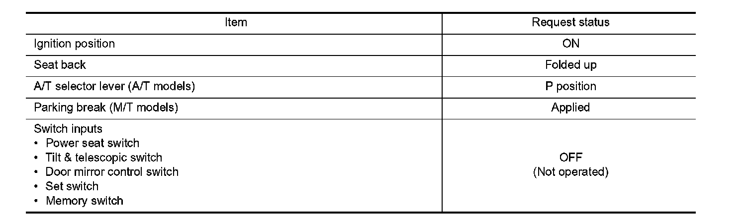 Satisfy all of the following items. The memory function is not performed if these items are not satisfied.