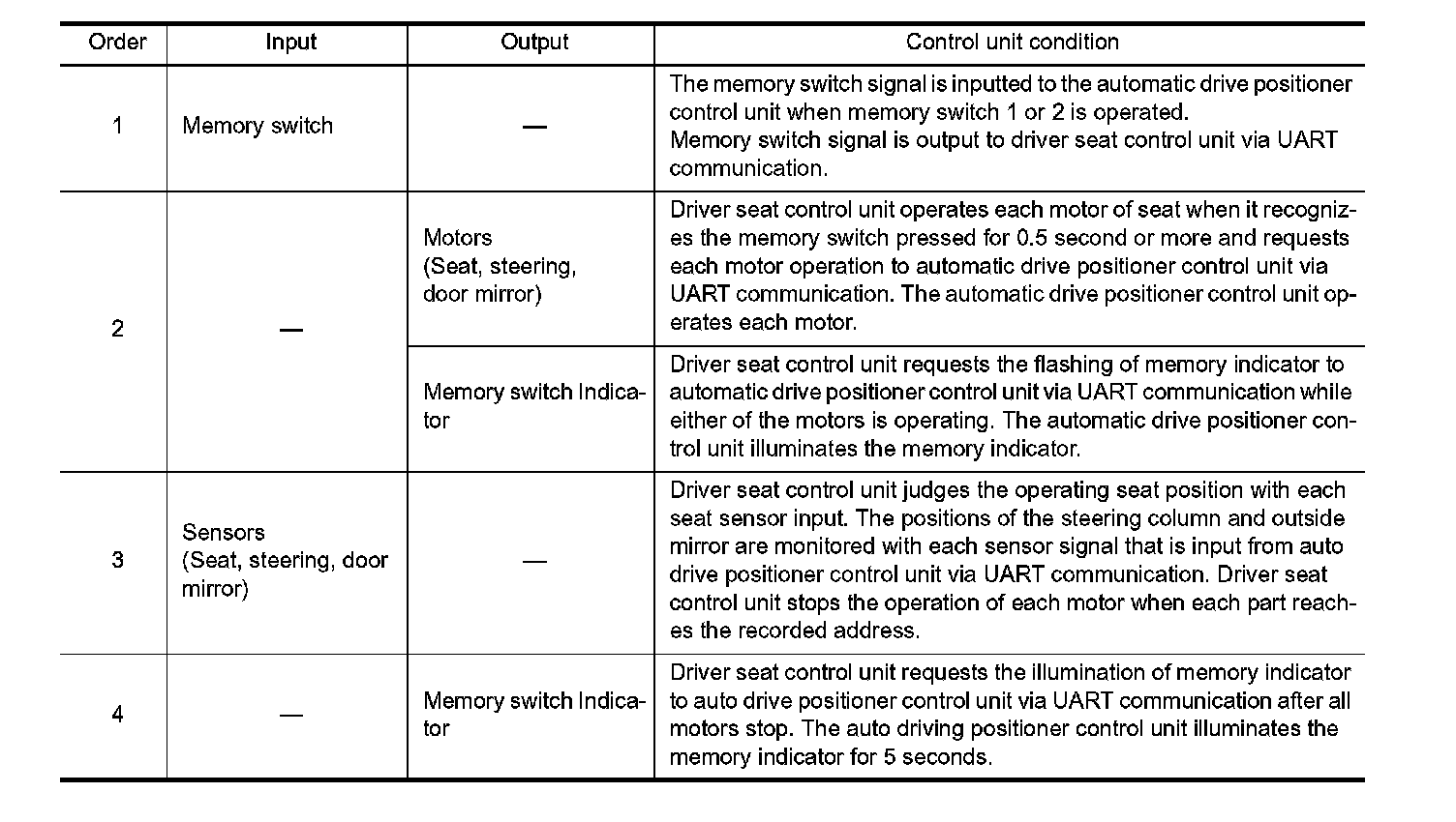 3. Driver seat, steering and door mirror will move to the memorized position.