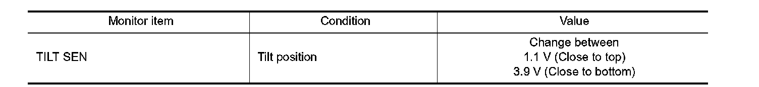 3. Check the tilt sensor signal under the following condition.