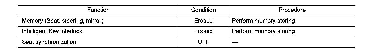 Each function is reset to the following condition when the driver seat control unit is replaced.