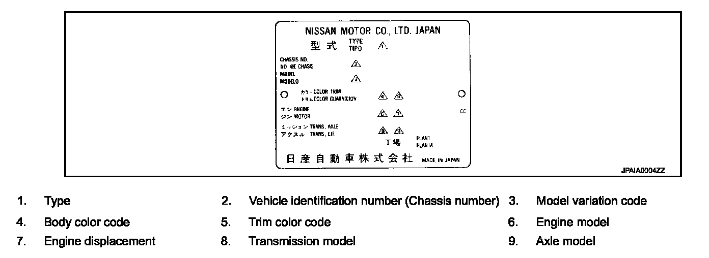 VEHICLE IDENTIFICATION NUMBER ARRANGEMENT