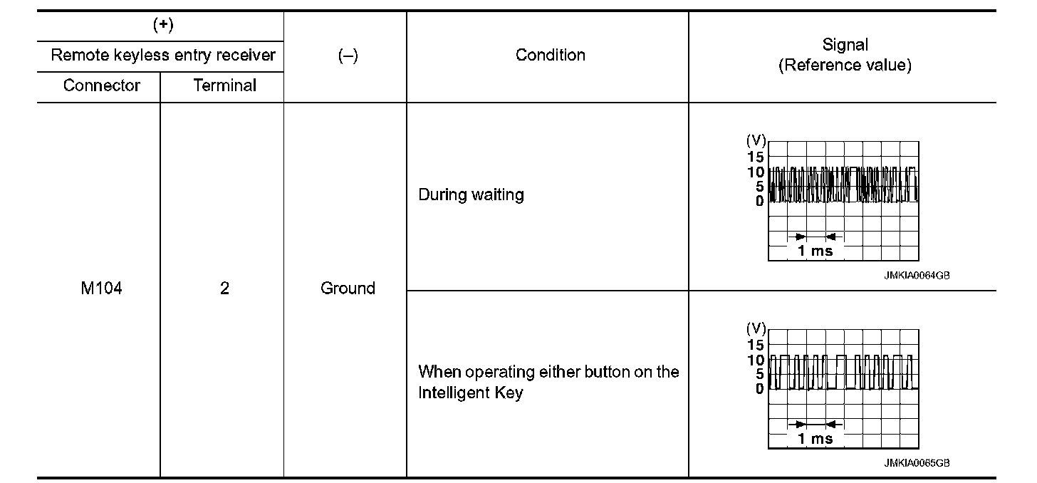 2. Check signal between remote keyless entry receiver harness connector and ground using oscilloscope.
