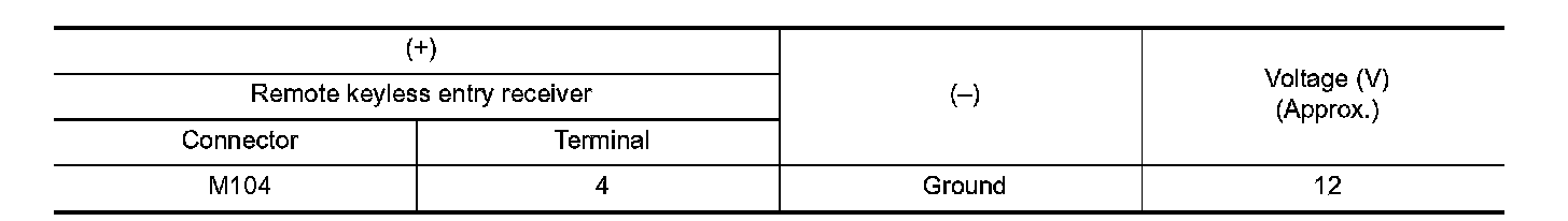 2. Check voltage between remote keyless entry receiver harness connector and ground.