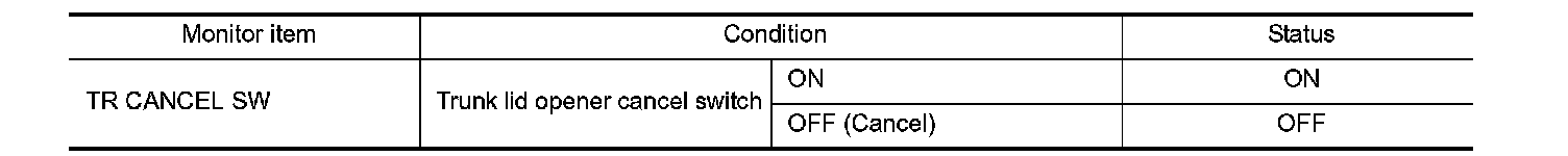 Check ("TR CANCEL SW") in BCM "Data Monitor" mode using CONSULT-III.