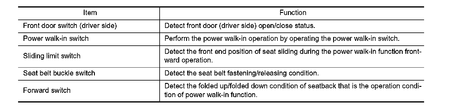 POWER WALK-IN FUNCTION : Component Description