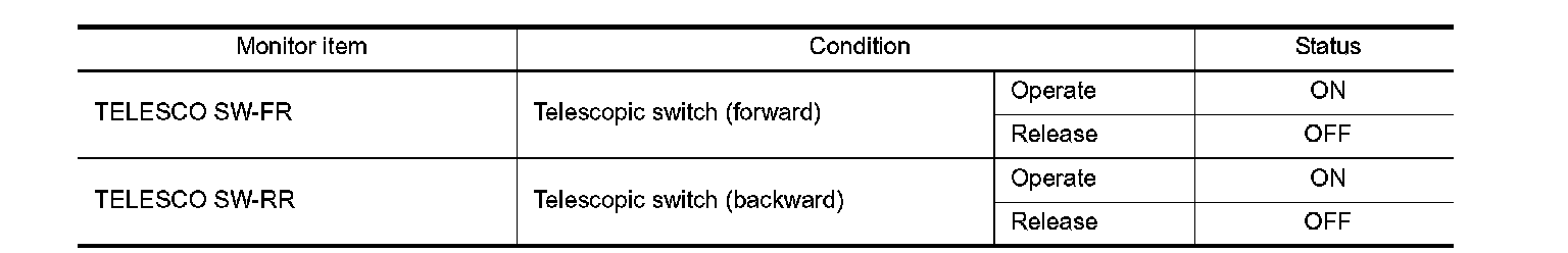2. Select "TELESCO SW-FR", "TELESCO SW-RR" in the "Data monitor" mode using CONSULT-III.