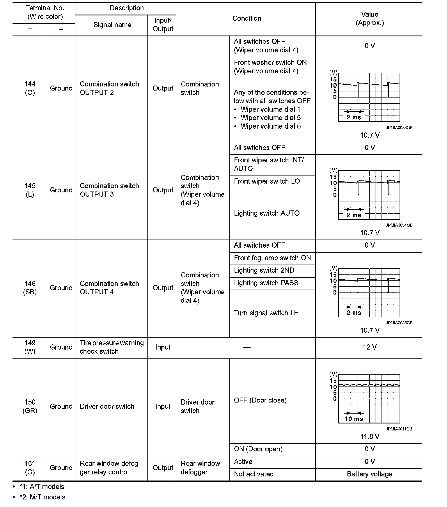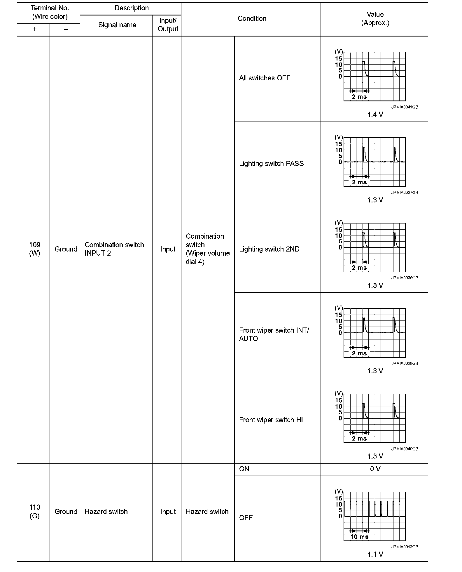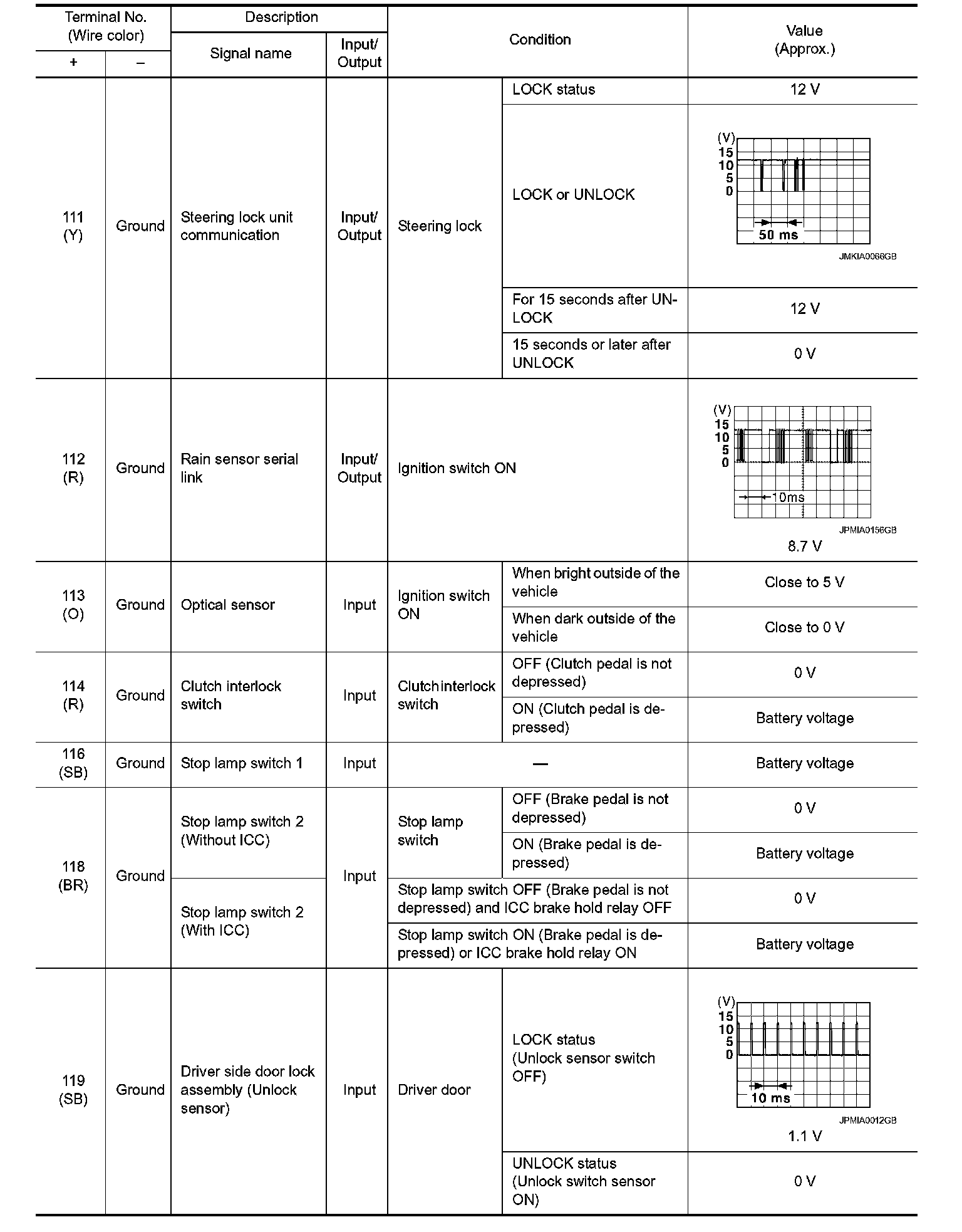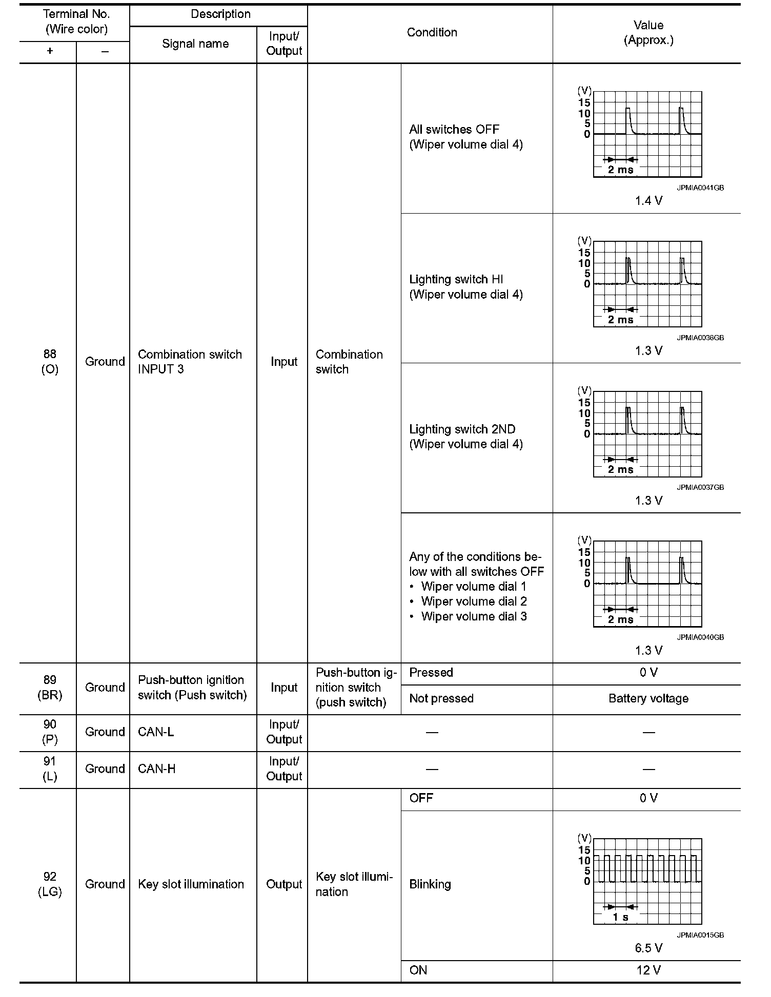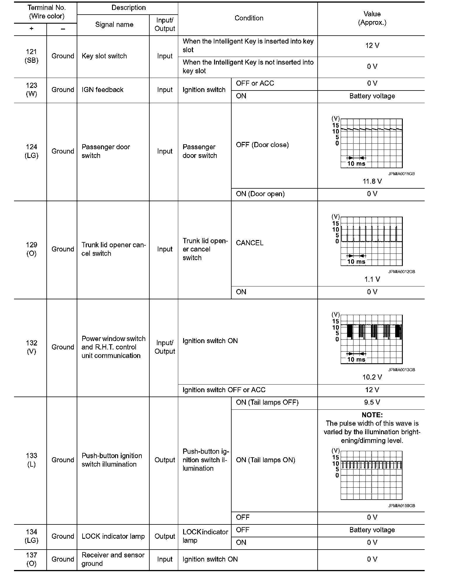 Pinout Values and Diagnostic Parameters