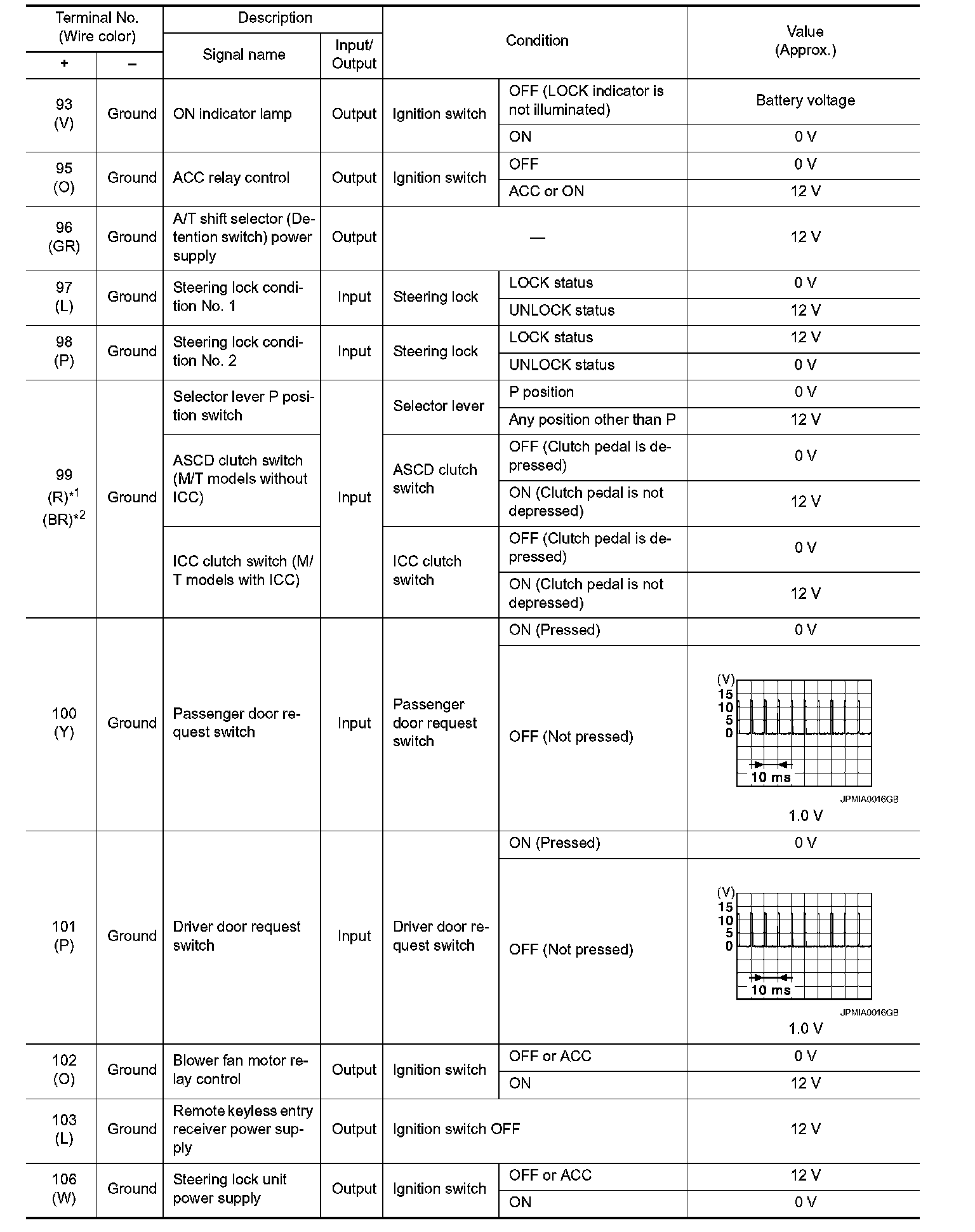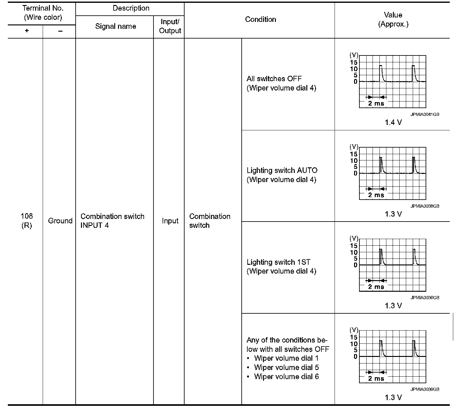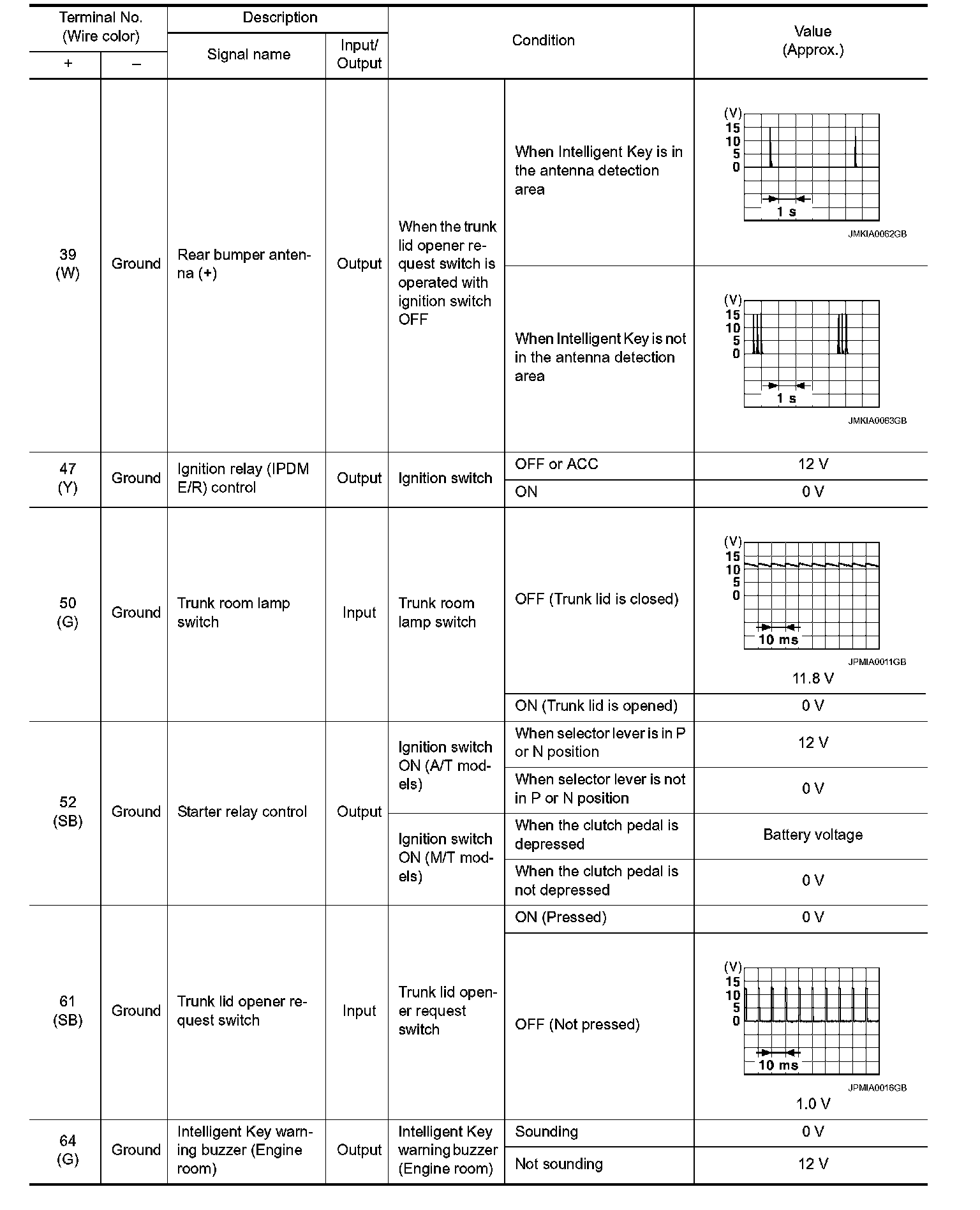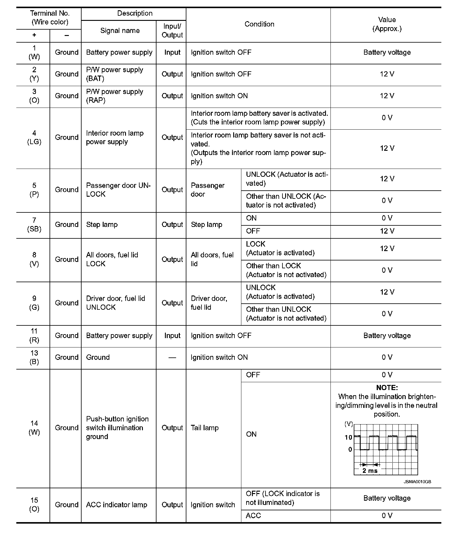 Pinout Values and Diagnostic Parameters
