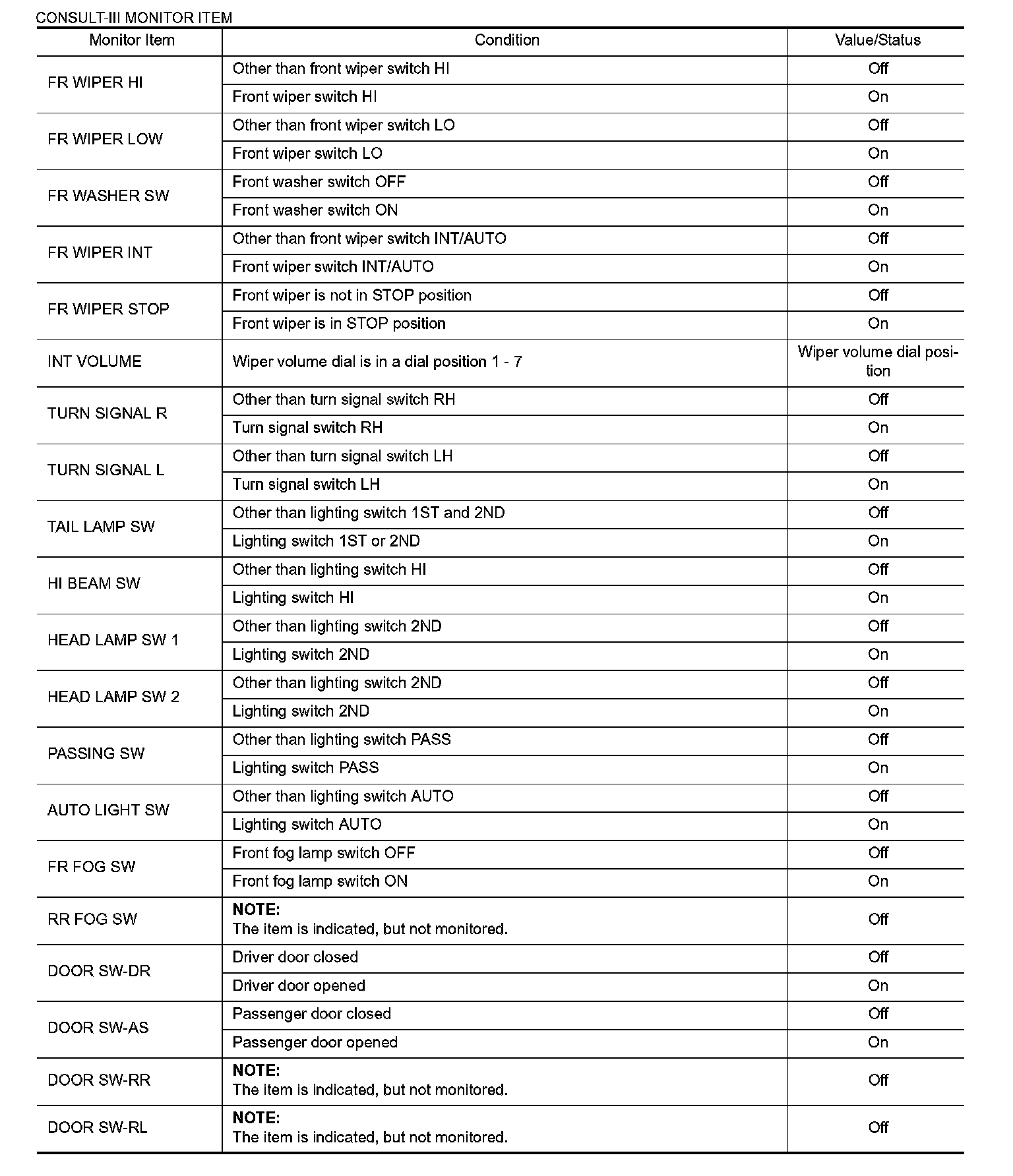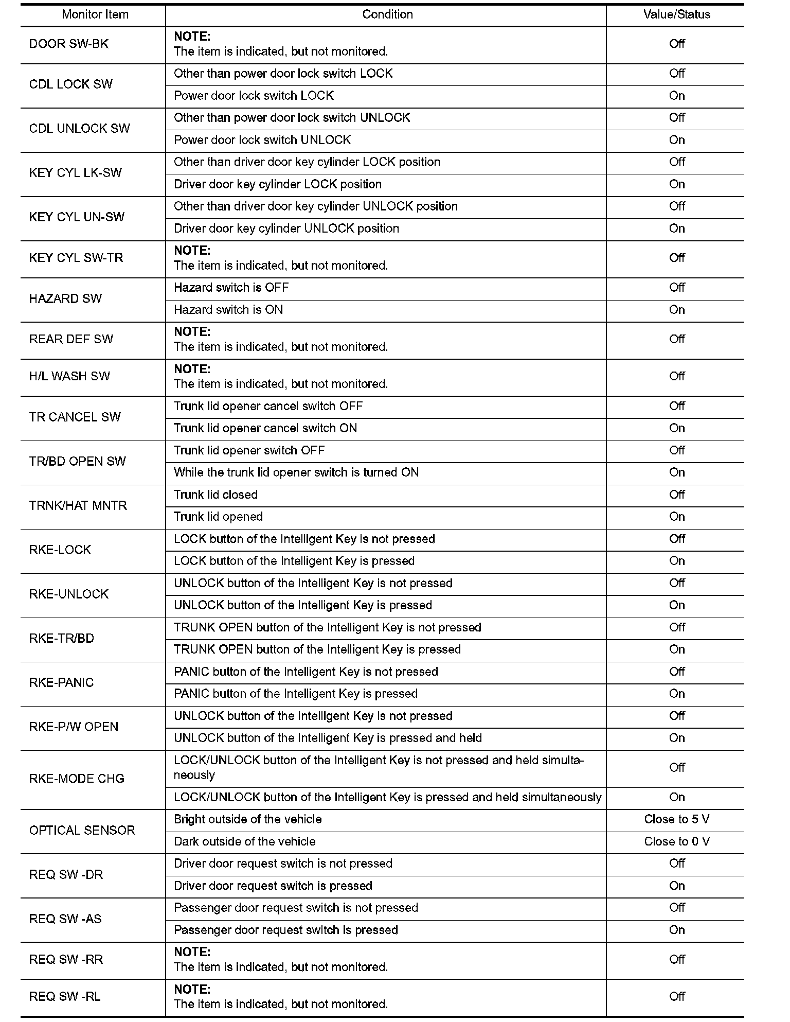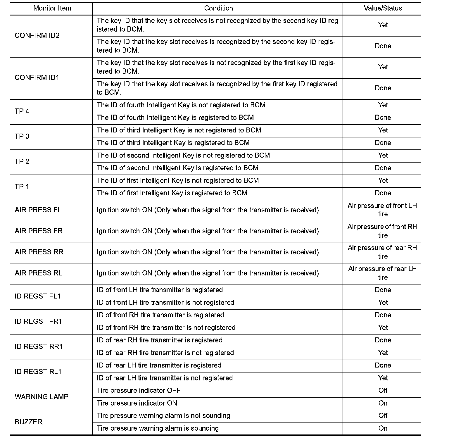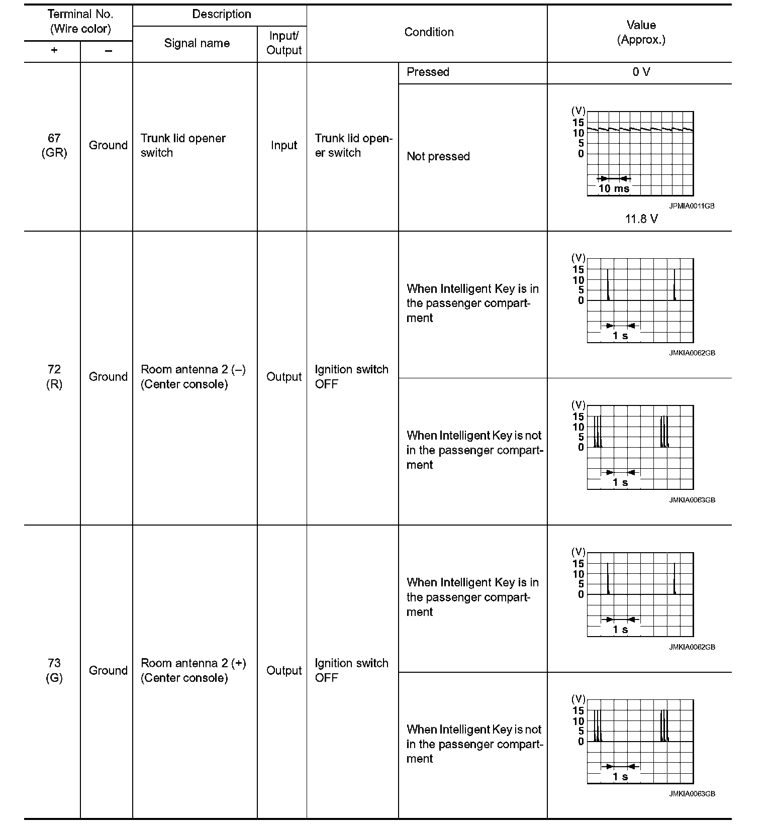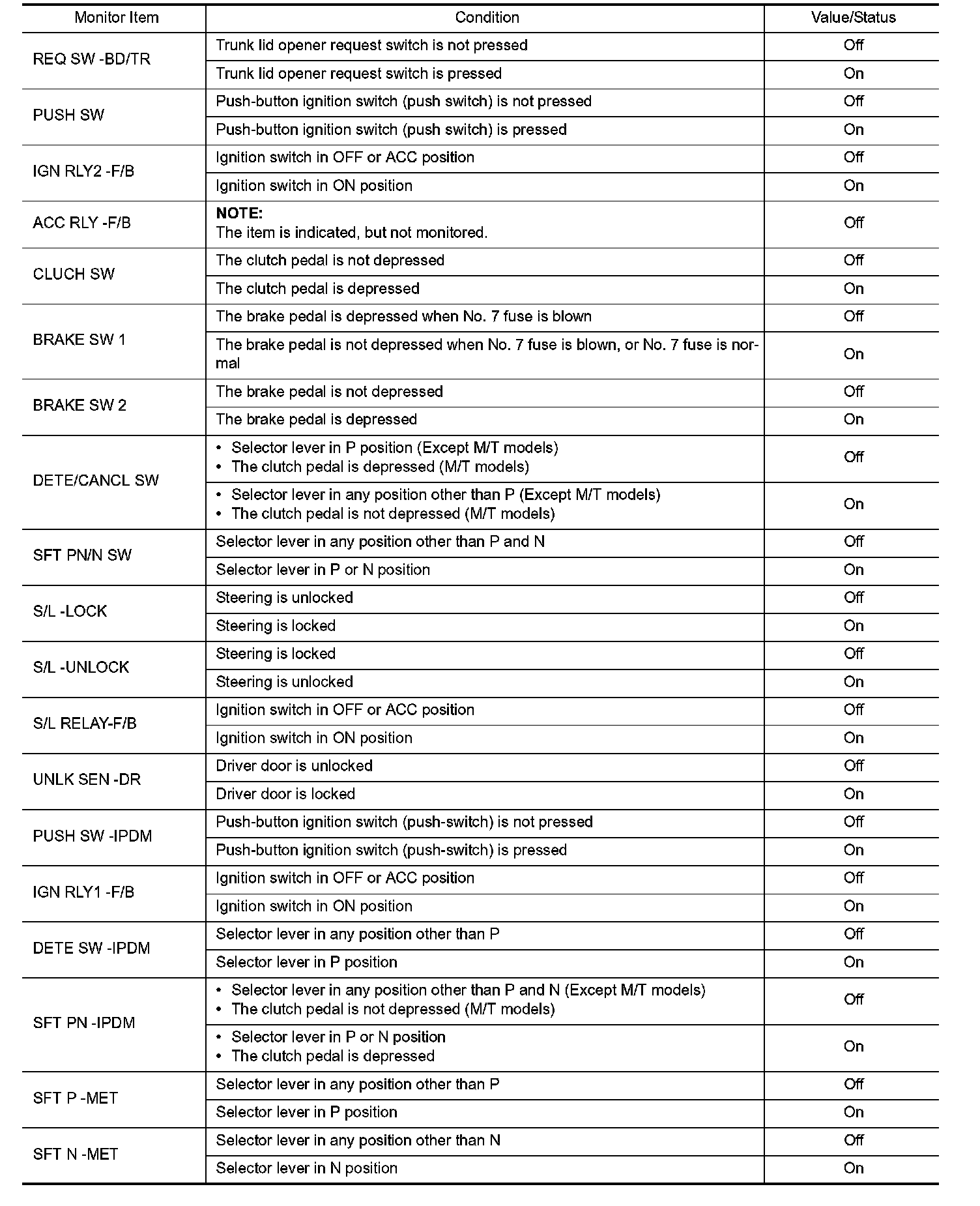 Pinout Values and Diagnostic Parameters