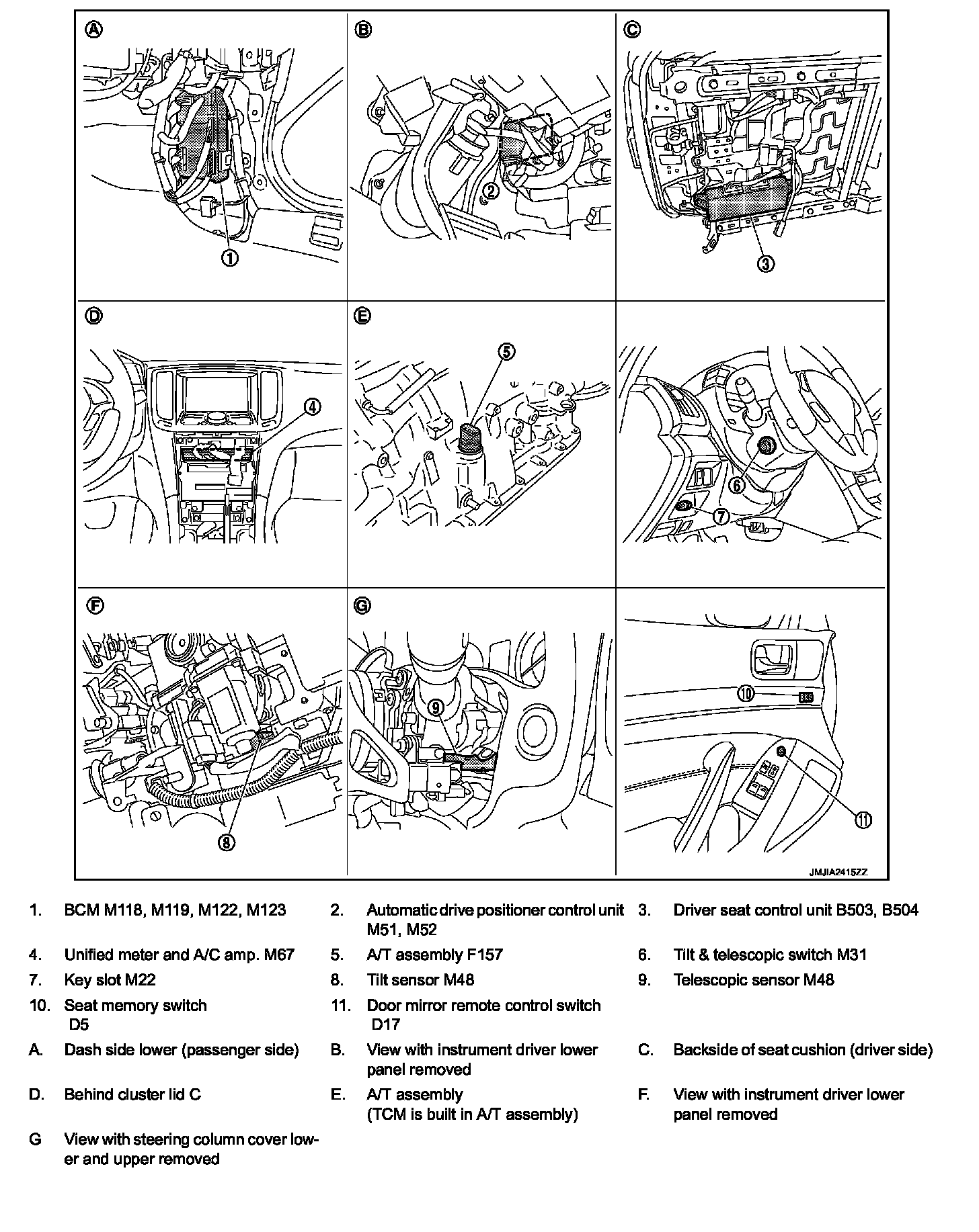 INTELLIGENT KEY INTERLOCK FUNCTION : Component Parts Location