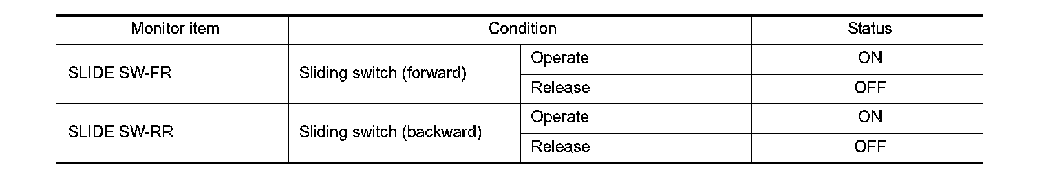 2. Select "SLIDE SW-FR", "SLIDE SW-RR" in the "Data monitor" mode using CONSULT-III.